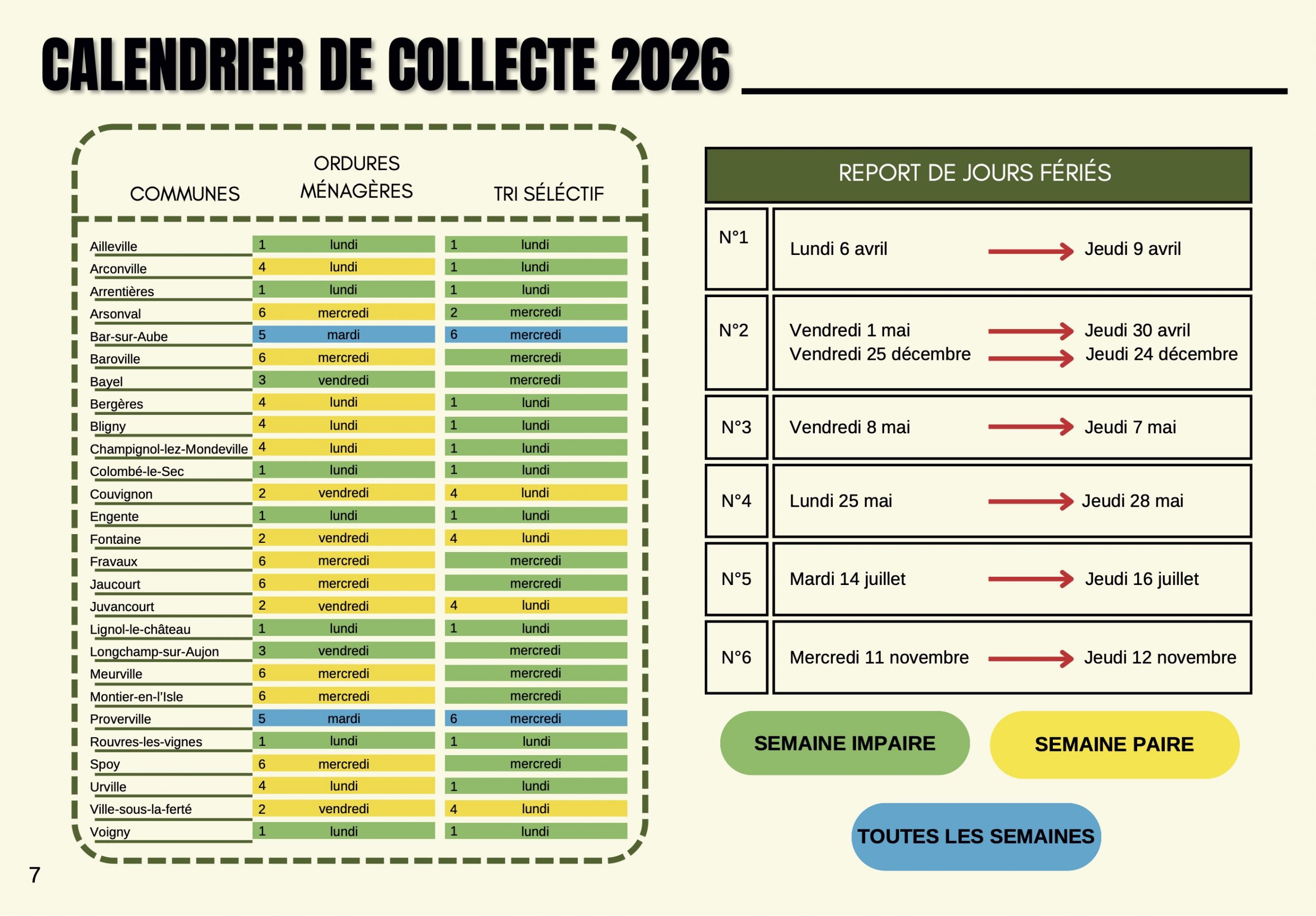 ➡️ A noter que pour 2026, les tournées de collectes sont désormais identiques pour la commune de Longchamp-sur-Aujon et pour son hameau d’Outre-Aube :