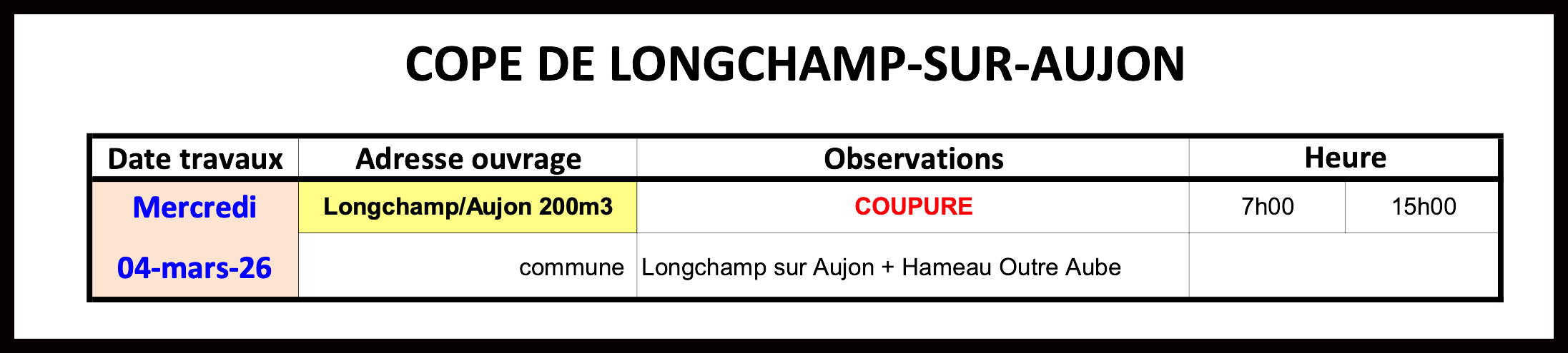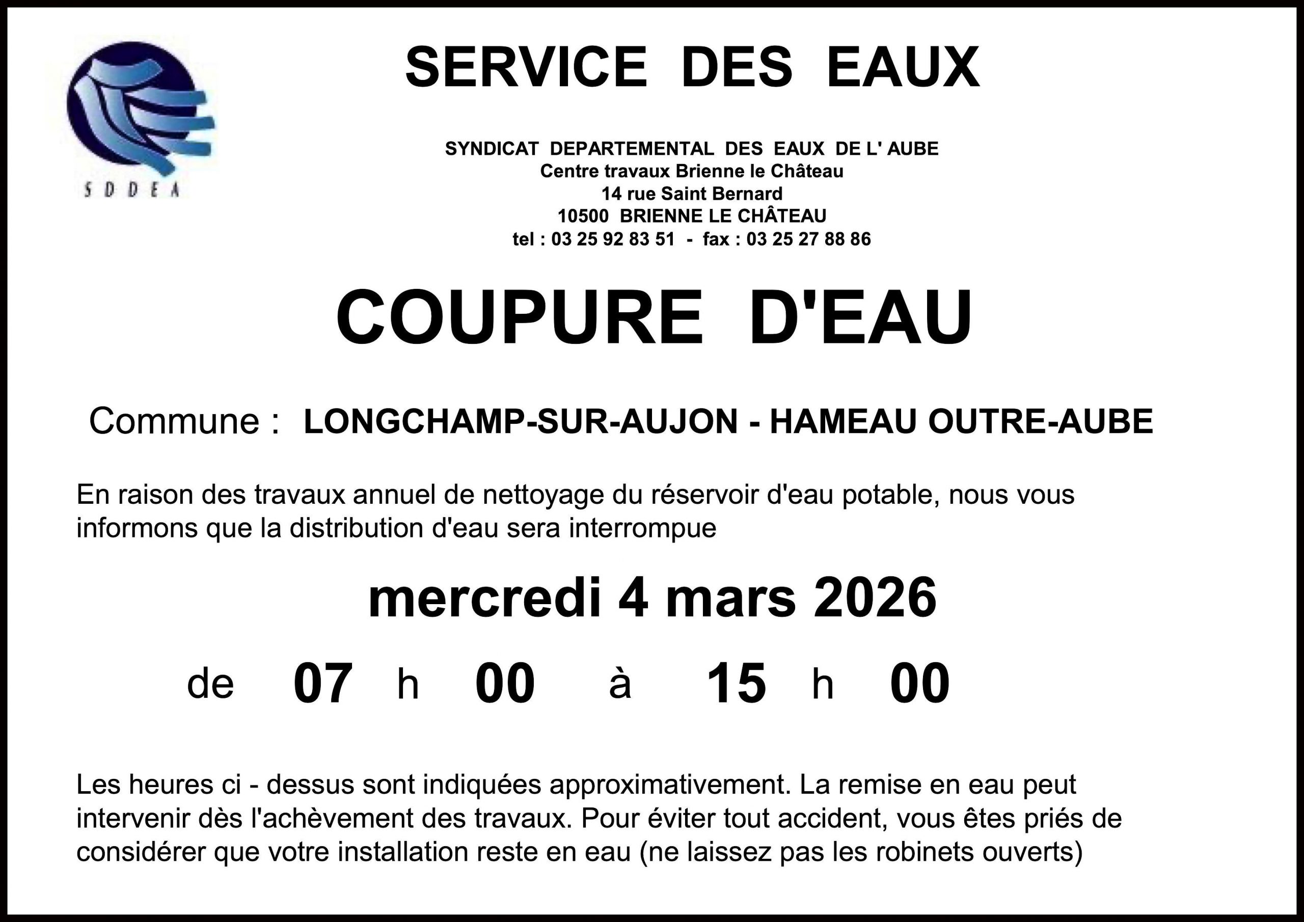 Communiqué du Syndicat départemental des eaux de l’Aube (SDDEA) / COPE de Longchamp-sur-Aujon :