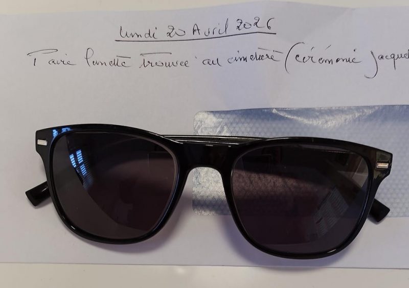 Une paire de lunettes de soleil a été trouvée au cimetière de la commune de Longchamp-sur-Aujon le lundi 20 avril 2026, jour de l’inhumation de Mme Jacqueline Tréma.